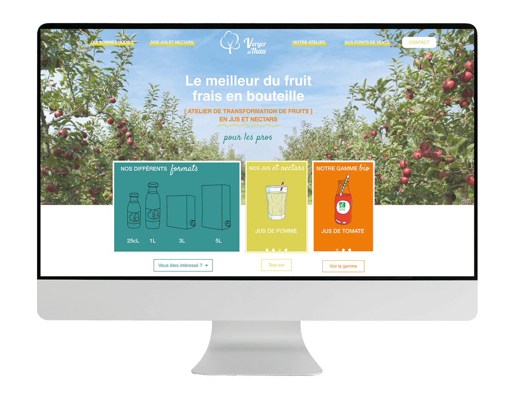 Pour concevoir le site de Verger de Thau, nous avons collaboré étroitement avec cette entreprise artisanale engagée dans la transformation de fruits locaux en jus et nectars de qualité.